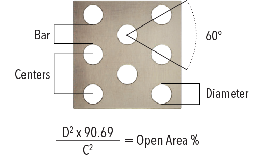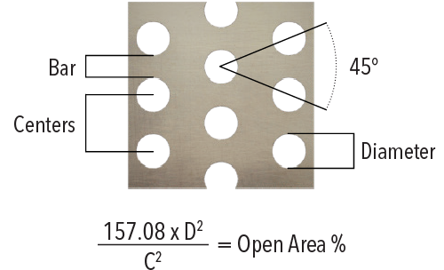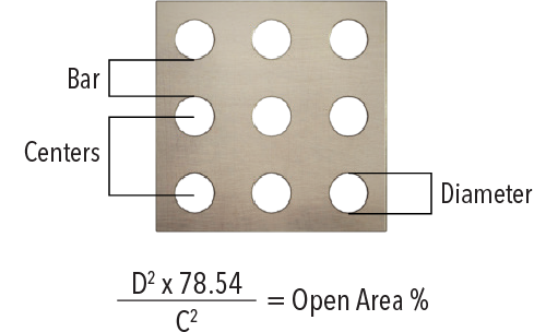 Open area represents the percentage of perforated surface versus solid metal. It affects airflow, light transmission, weight, and visibility. Use our Open Area Reference Table to determine the right balance for your project.